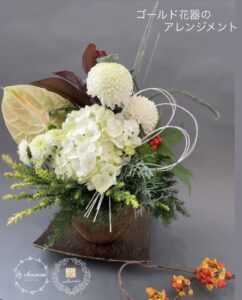 お正月を華やかに迎えるゴールド花器アレンジ。
